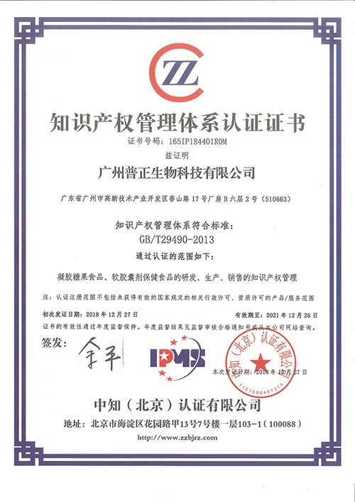 2018年,酵母富鋅凝膠糖果等十二款產(chǎn)品被認(rèn)定為高新技術(shù)產(chǎn)品;榮獲CBME“服務(wù)十年獎(jiǎng)”;12月27日通過知識(shí)產(chǎn)權(quán)管理體系認(rèn)證;