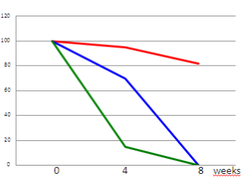 結(jié)論:本實驗在有氧、40℃環(huán)境下進(jìn)行的原料穩(wěn)定性比較,結(jié)果顯示8周后普正使用的原料穩(wěn)定性最強(qiáng),仍然有高達(dá)80%的蝦青素含量。
