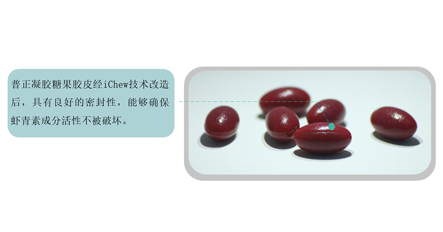 蝦青素容易被氧化,凝膠糖果具備良好的密封性,可以保護(hù)蝦青素活性不被破壞,而傳統(tǒng)的片劑和硬膠囊不具備這樣的優(yōu)勢(shì)。
