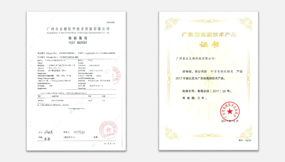 蝦青素凝膠糖果于2017年12月被認(rèn)定為廣東省高新技術(shù)產(chǎn)品。
