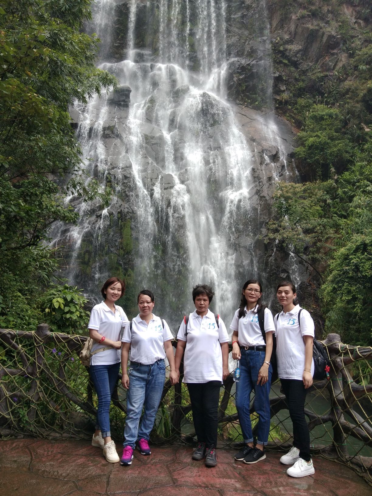 第一站是玻璃大峽谷。小伙伴們一路浩浩蕩蕩,沿著林間小路拾級而上,這里樹木郁郁蔥蔥,層層疊疊的深綠淺綠令人應(yīng)接不暇,再加上無數(shù)白練飛漱其間,水霧彌漫,清幽醉人。帥哥美女們一路談笑風(fēng)生,一路擺拍錄影,想把滿山的美景和此時此刻的好心情定格帶回家!