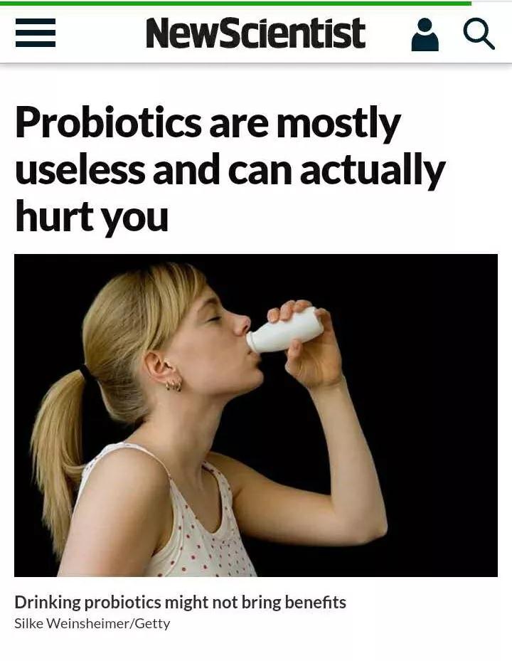 不過,最近發(fā)表在英國《新科學(xué)家》雜志網(wǎng)站的文章可能要令你大大改觀了。這篇標(biāo)題為“益生菌基本沒用,還可能有害”的文章表示益生菌的作用因人而異,并不是所有人食用了益生菌產(chǎn)品后都能從中得益,而且服用益生菌會破壞人體腸道中的原有菌群,對人體健康造成損害!