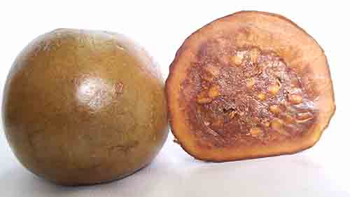 寶樂果粉取自寶樂果,也叫博羅霍,西班牙語為Borojo。它是一種生長在南美洲厄瓜多爾和哥倫比亞熱帶雨林地區(qū)的水果??礃幼用矗涿膊粨P,和番石榴差不多模樣,不過個頭稍大。直徑達7-12cm,還沒有成熟時呈綠色,成熟時轉為茶褐色,重量有五六個蘋果那么重,果肉柔軟多籽。味道酸澀粘稠。
